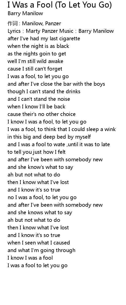 | 歌曲 | I Was a Fool (To Let You Go) |