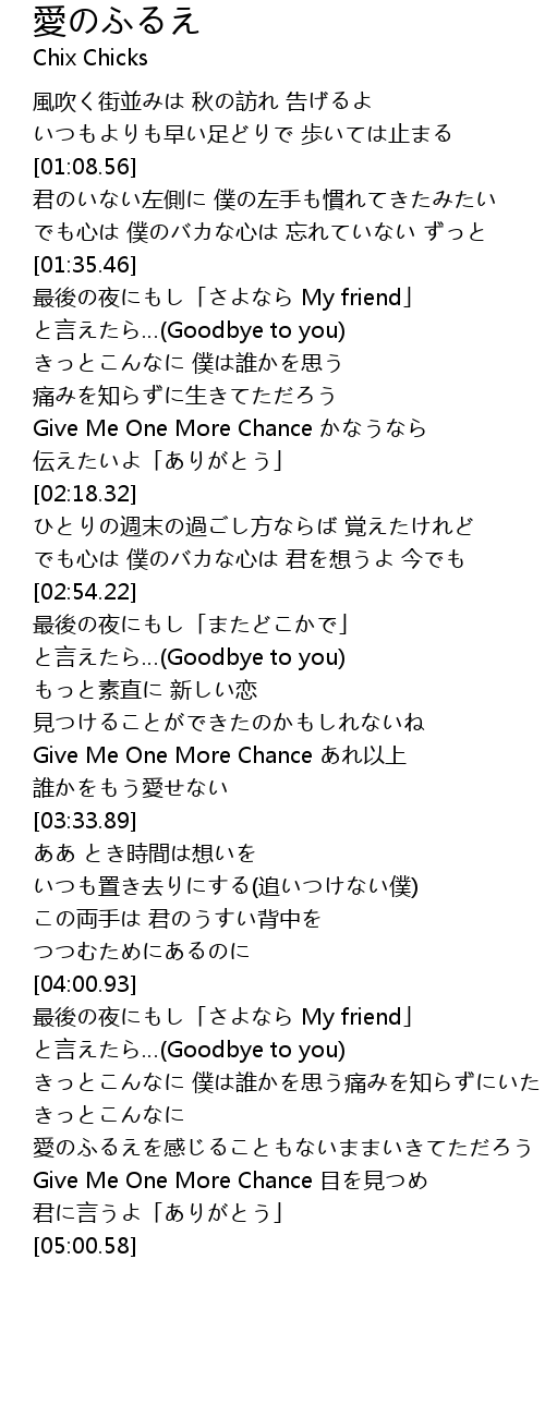 | [04:46.39] | Give Me One More Chance 目を見つめ |