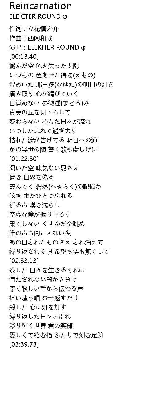 | [00:07.68] | 演唱:ELEKITER ROUND φ |