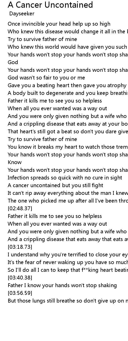 | [03:49.89] | Father I know your hands won't stop shaking |
