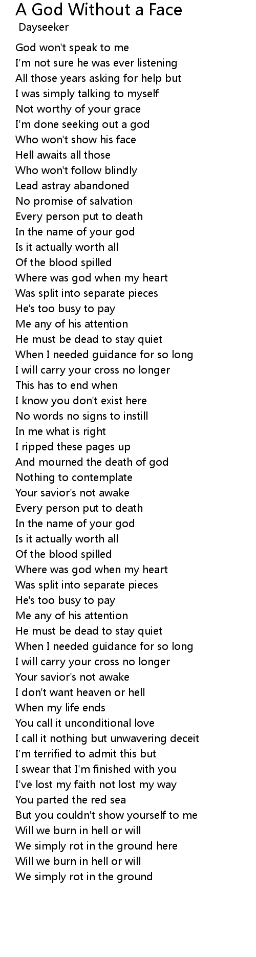 | [00:37.82] | I'm done seeking out a god |