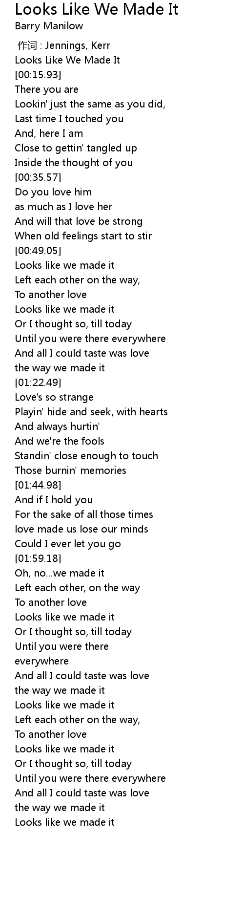 | [00:00.00] | 作词 : Jennings, Kerr |