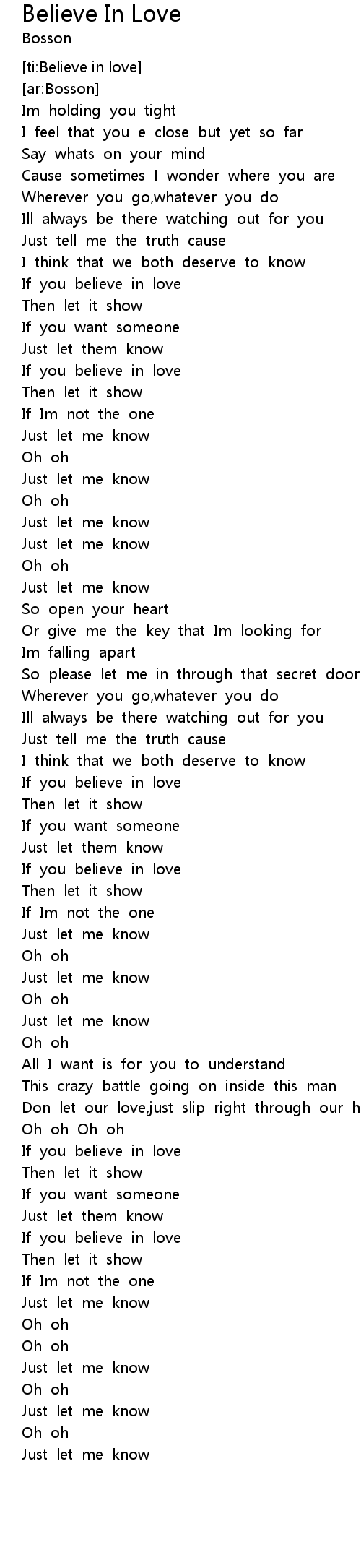 Believe In Love 歌词