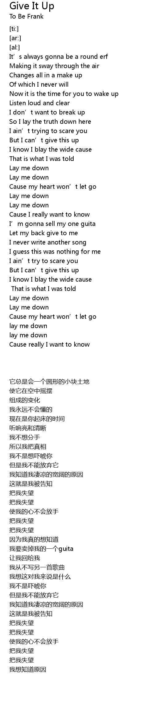 | [01:33.71] | Lay me down |