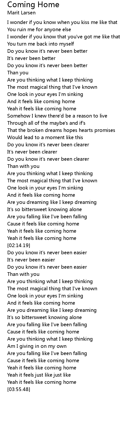 And it feels like coming home |