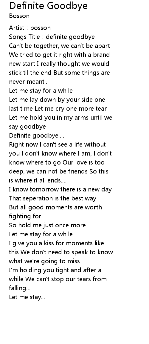 | [00:06.55] | Songs Title:definite goodbye |