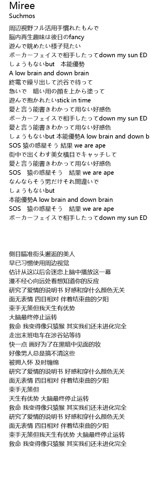 | [02:15.78] | SOS 猿の惑星そう 結果 we are ape |