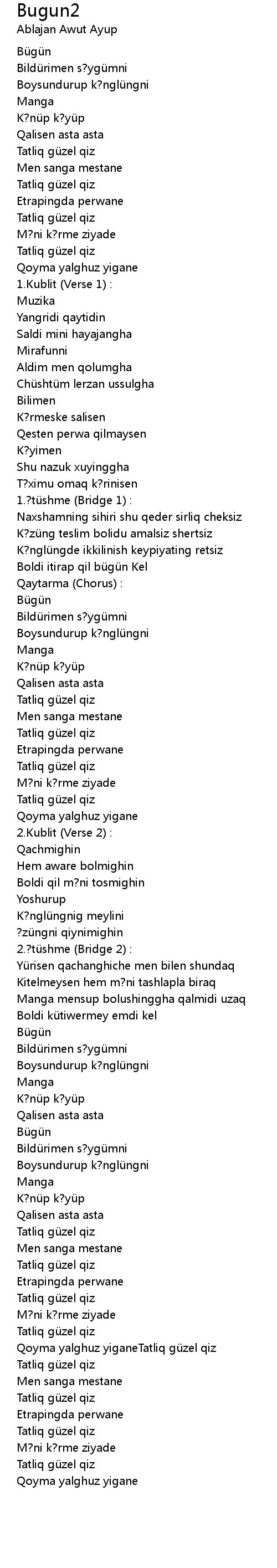 | 歌手 | Ablajan Awut Ayup |