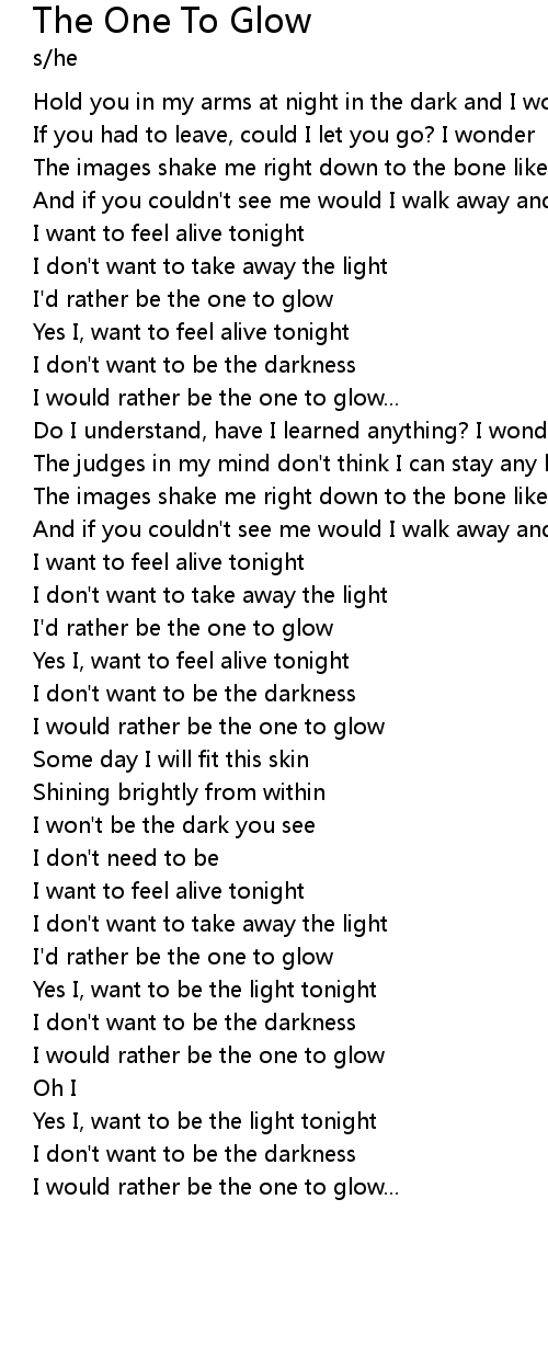 | [01:19.72] | Yes I, want to feel alive tonight |