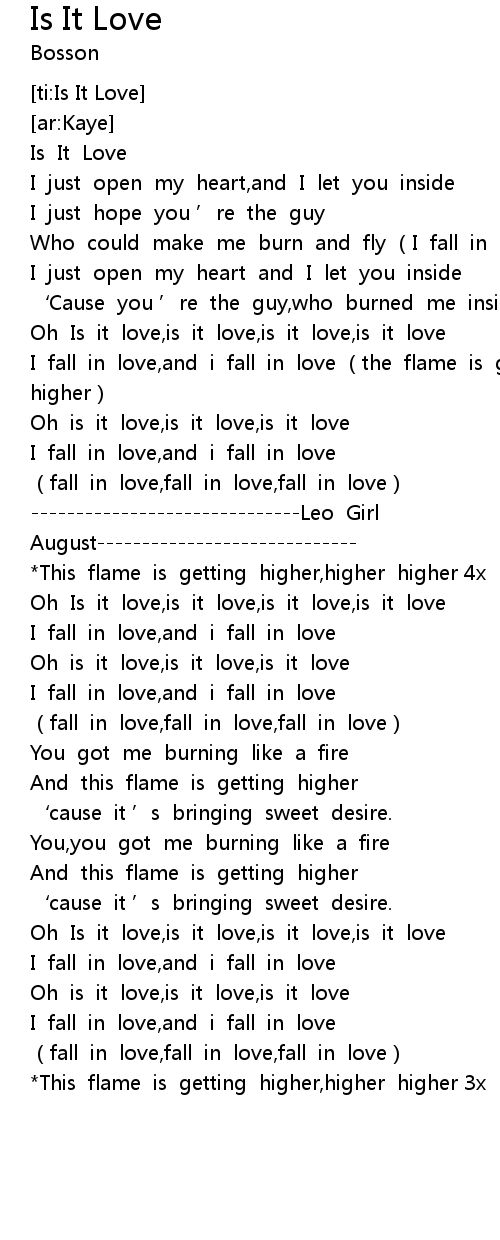 | [02:01.197] | Oh Is it love, is it love, is it love, is it love |