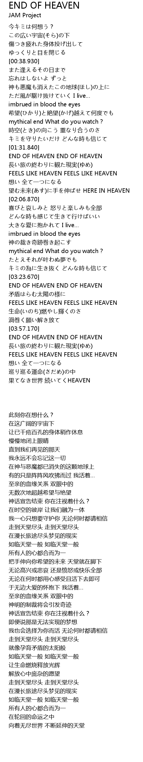 | [03:24.660] | END OF HEAVEN END OF HEAVEN |