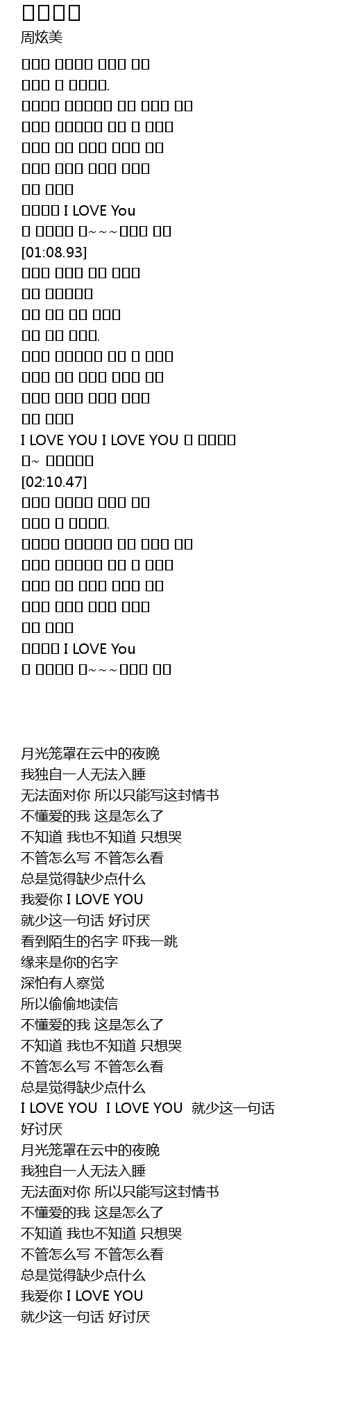 | [01:58.60] | I LOVE YOU I LOVE YOU 就少这一句话 |