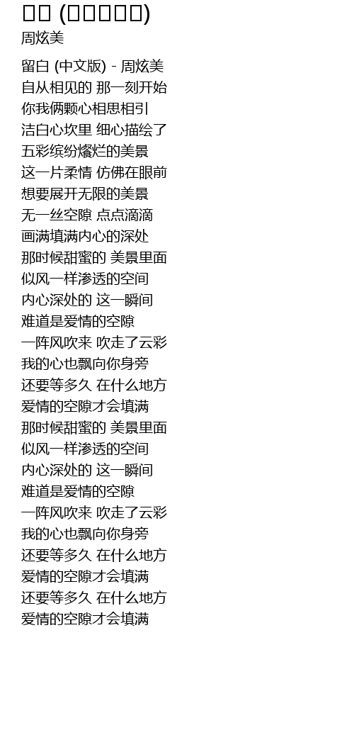 | [00:12.56] | 留白 (中文版) - 周炫美 |