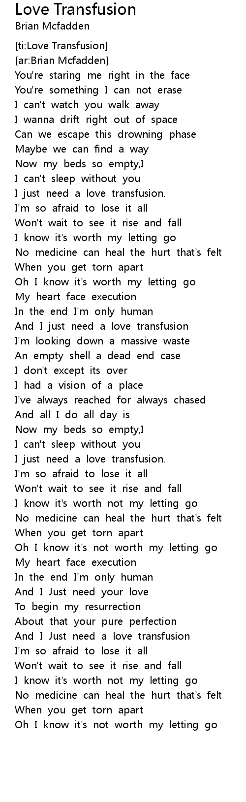 And I Just need a love transfusion |