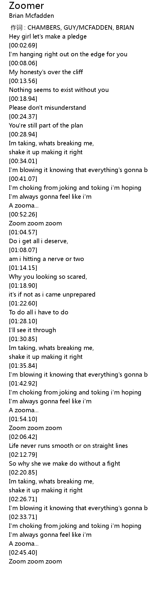 | [00:00.00] | 作词 : CHAMBERS, GUY/MCFADDEN, BRIAN |
