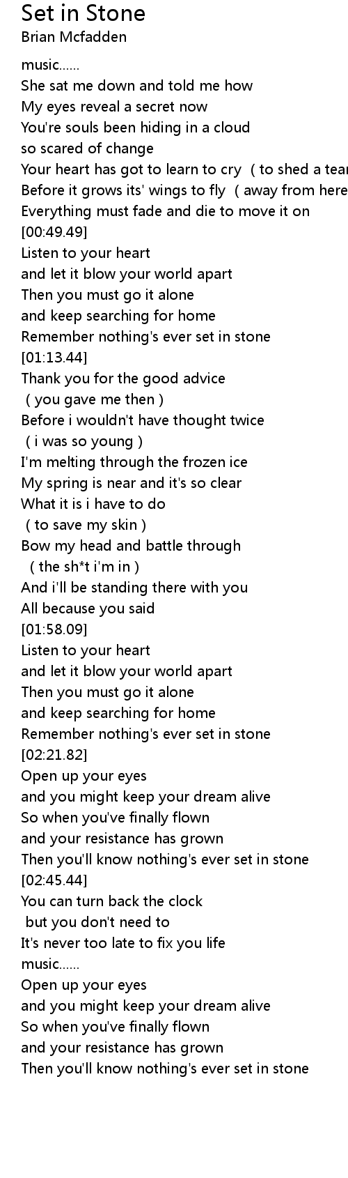 | [02:18.41] | Remember nothing's ever set in stone |
