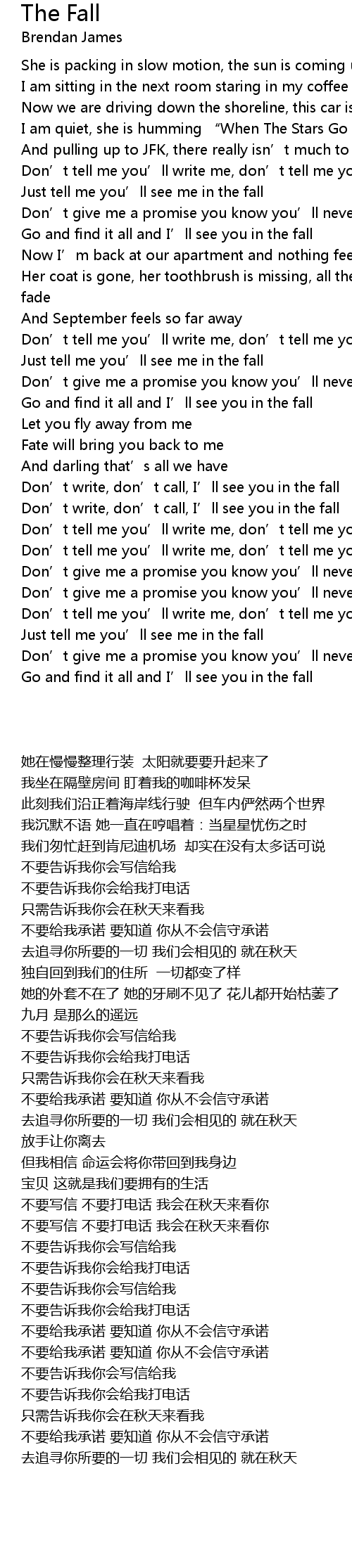 | [02:58.130] | 不要写信 不要打电话 我会在秋天来看你 |