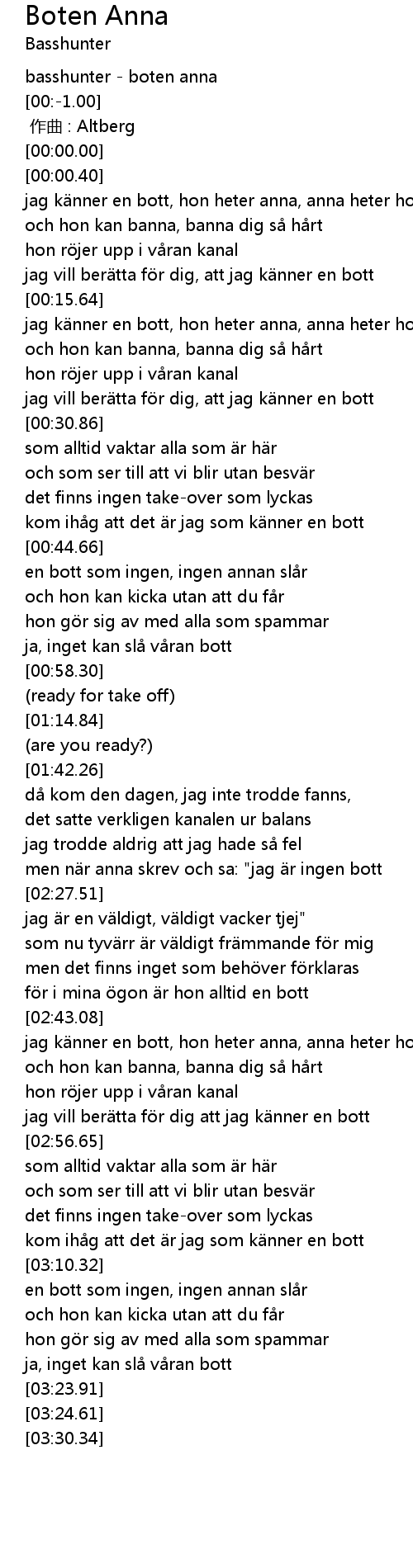 | [02:43.43] | jag känner en bott, hon heter anna, anna heter hon |