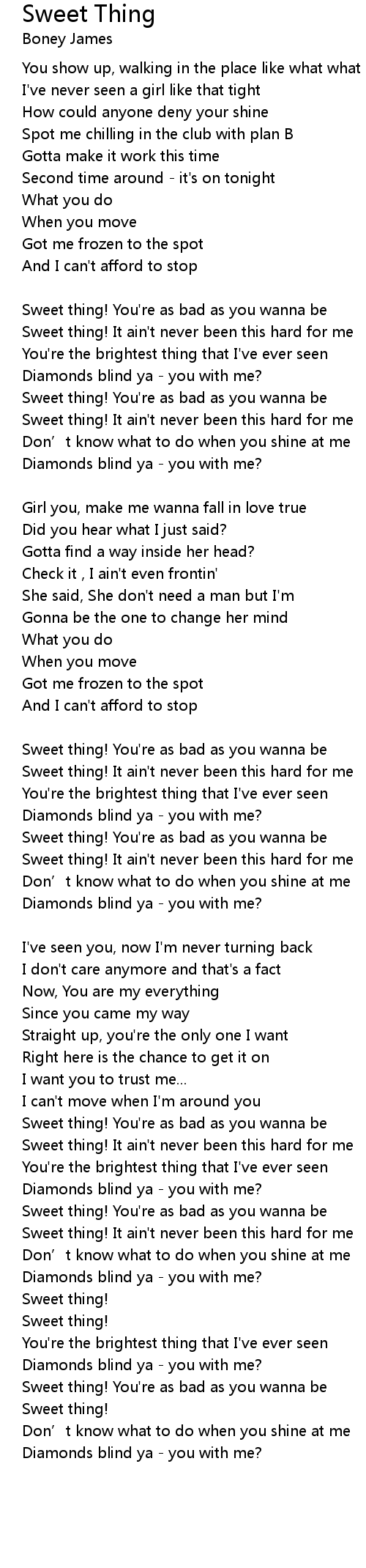| Sweet thing! It ain' t never been this hard for me | |