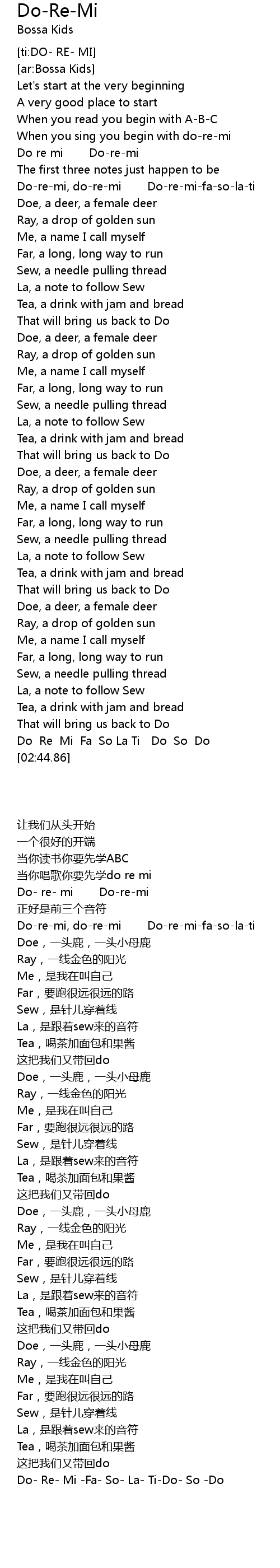 | [02:40.08] | Do- Re- Mi -Fa- So- La- Ti-Do- So -Do |