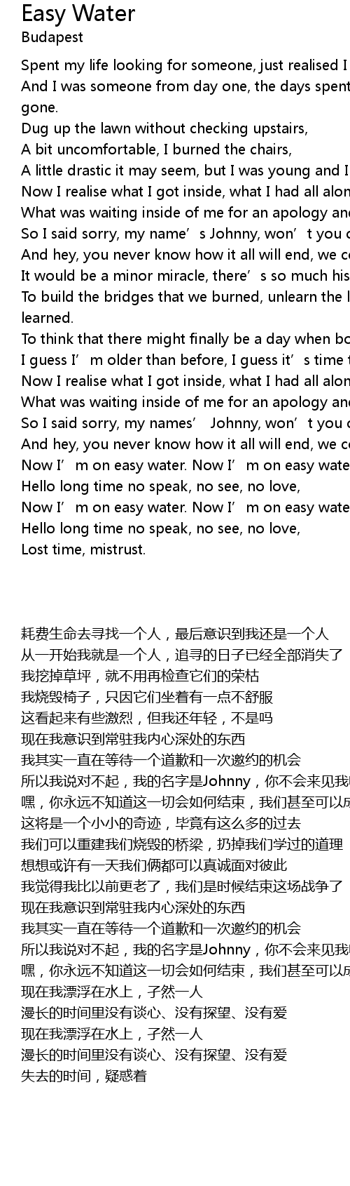 | [02:31.39] | Now I' m on easy water. Now I' m on easy water..... |