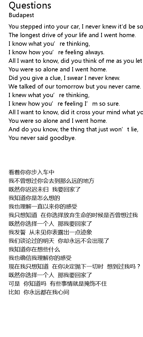 | [00:38.83] | You stepped into your car, I never knew it'd be so far. |