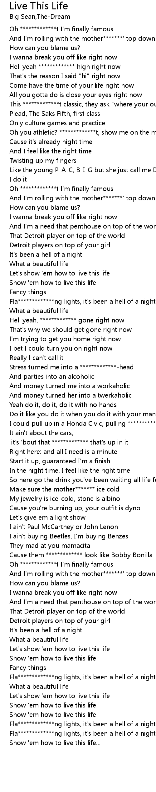 | [02:00.680] | it's 'bout that ************* that's up in it |