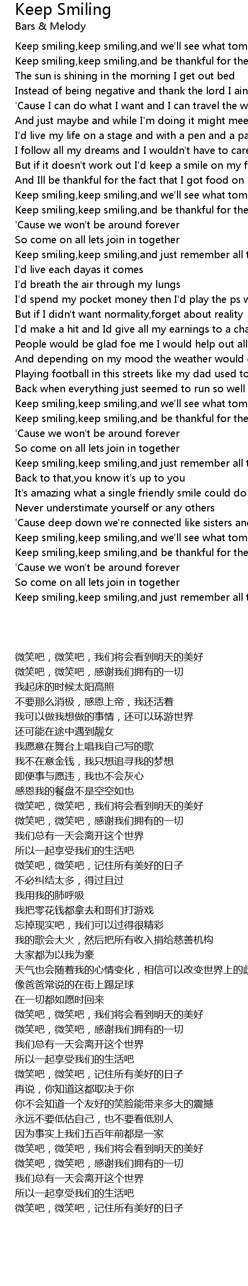 Keep smiling,keep smiling,and we'll see what tomorrow brings |