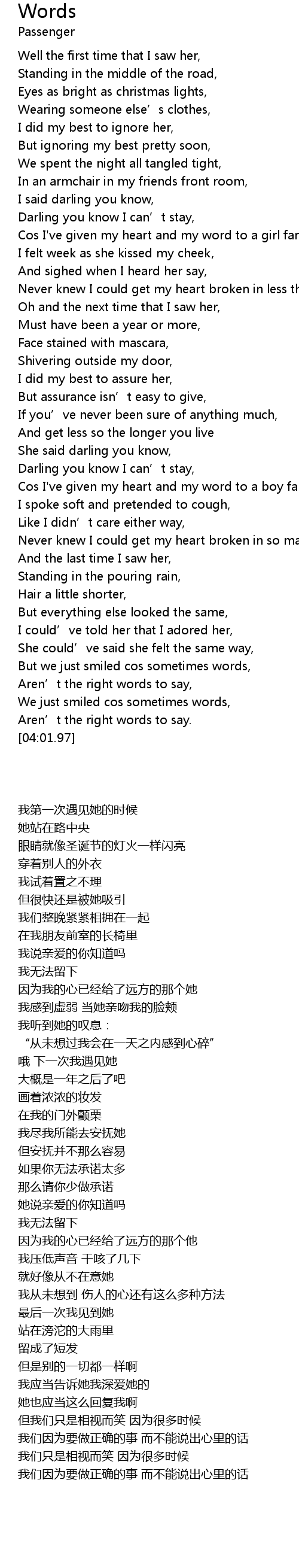 | [01:01.04] | Cos I' ve given my heart and my word to a girl far away, |
