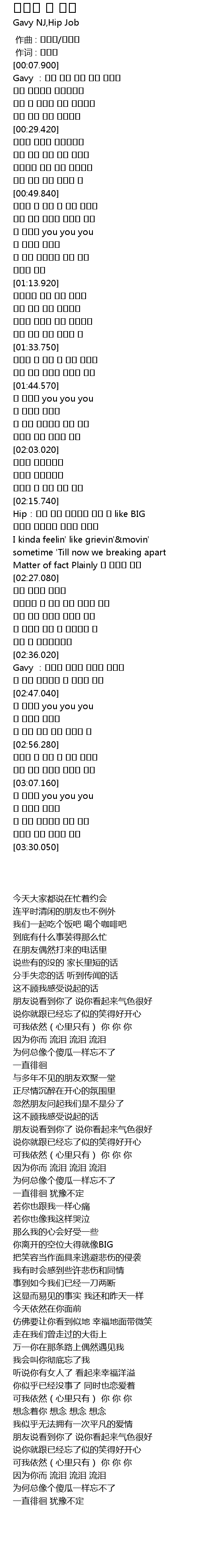 | [02:36.030] | Gavy :여자가 생겼대 행복해 보였대 |