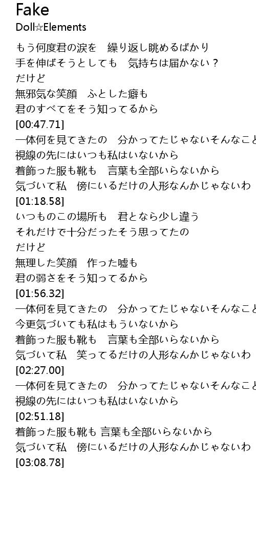 | [02:58.31] | 気づいて私 傍にいるだけの人形なんかじゃないわ |