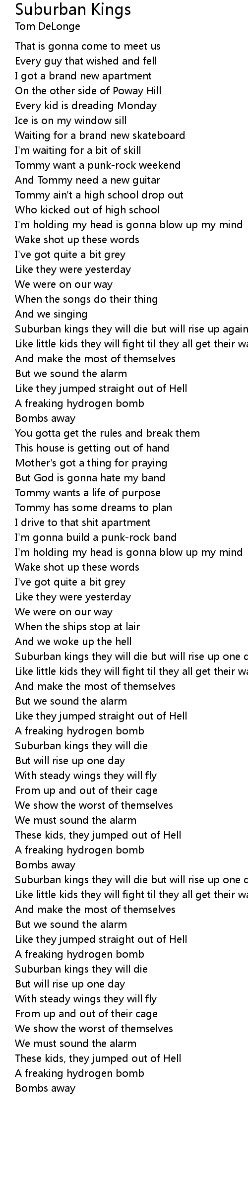Suburban kings they will die but will rise up one day |