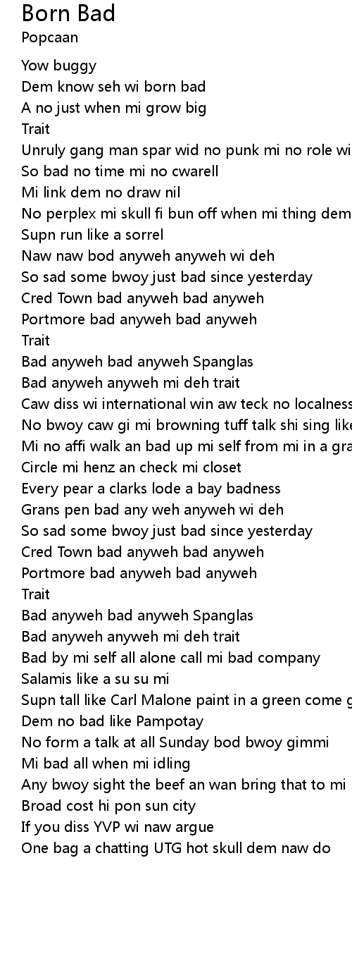 Mi no affi walk an bad up mi self from mi in a grade one a bay naw kiss |