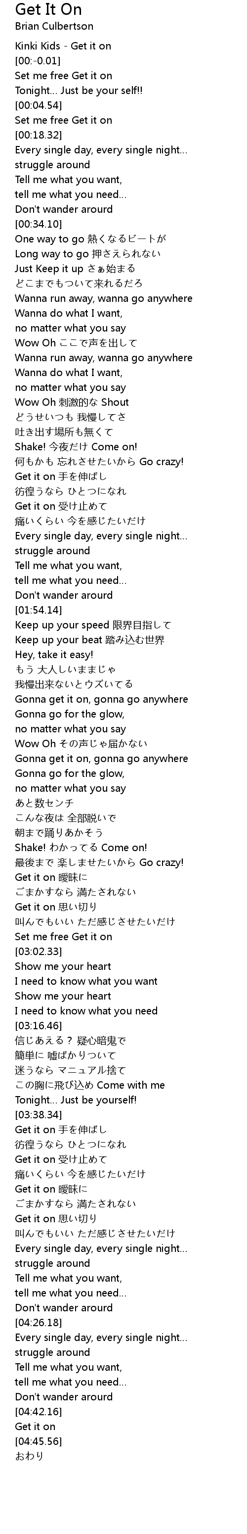 | [03:56.19] | Get it on 曖昧に |