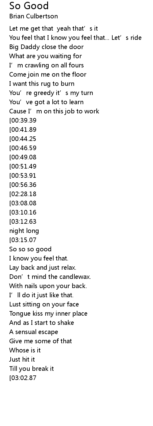 | [03:34.65][03:15.07][02:36.05][02:16.50][01:07.72] | Cause this feel so so so good So so so good |