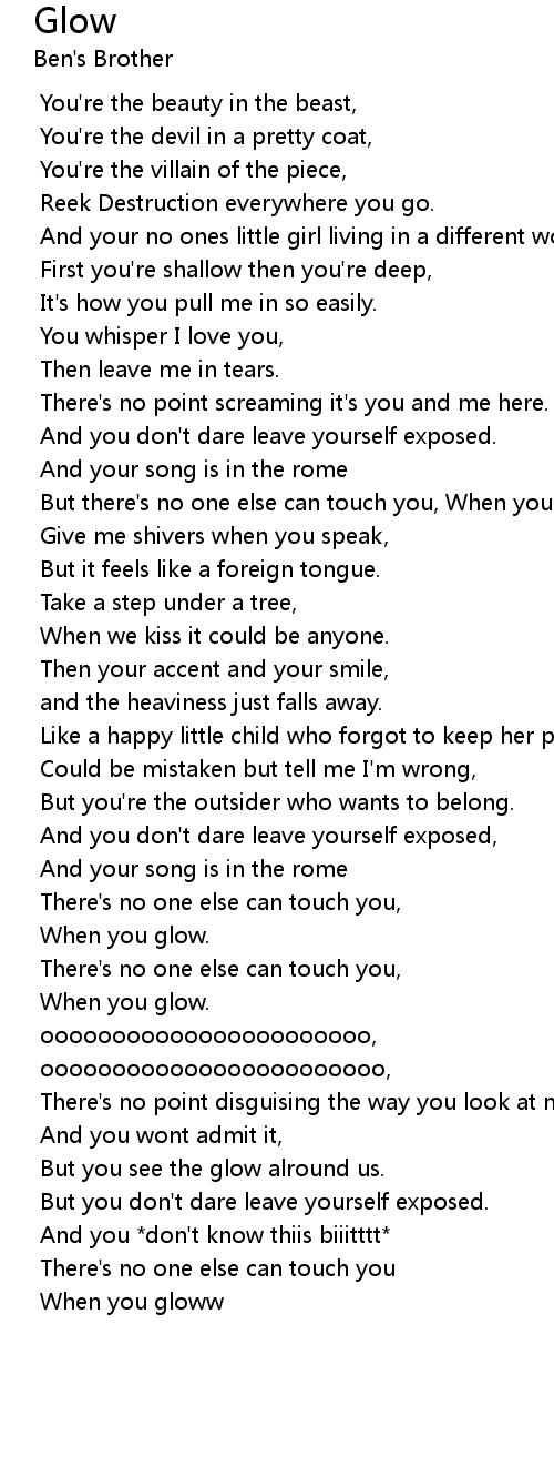 But there's no one else can touch you, When you glow. |