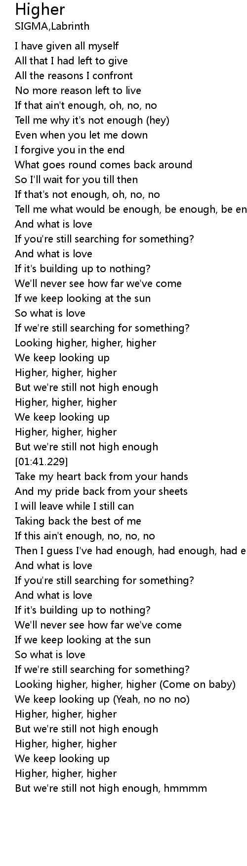 | [01:35.411] | Higher, higher, higher |