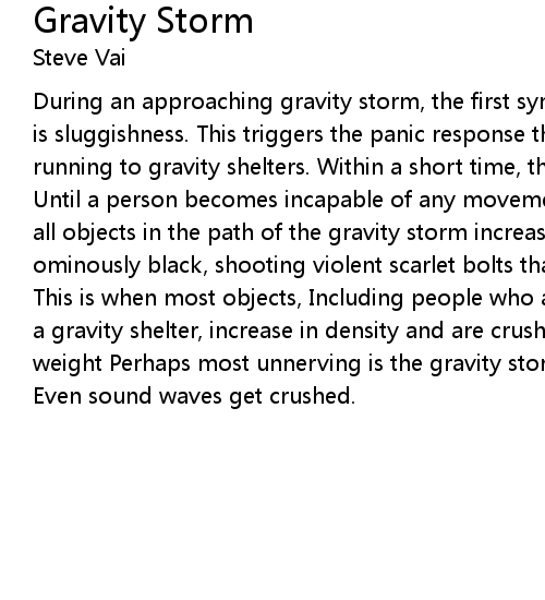 weight Perhaps most unnerving is the gravity storm's eerie silence. |