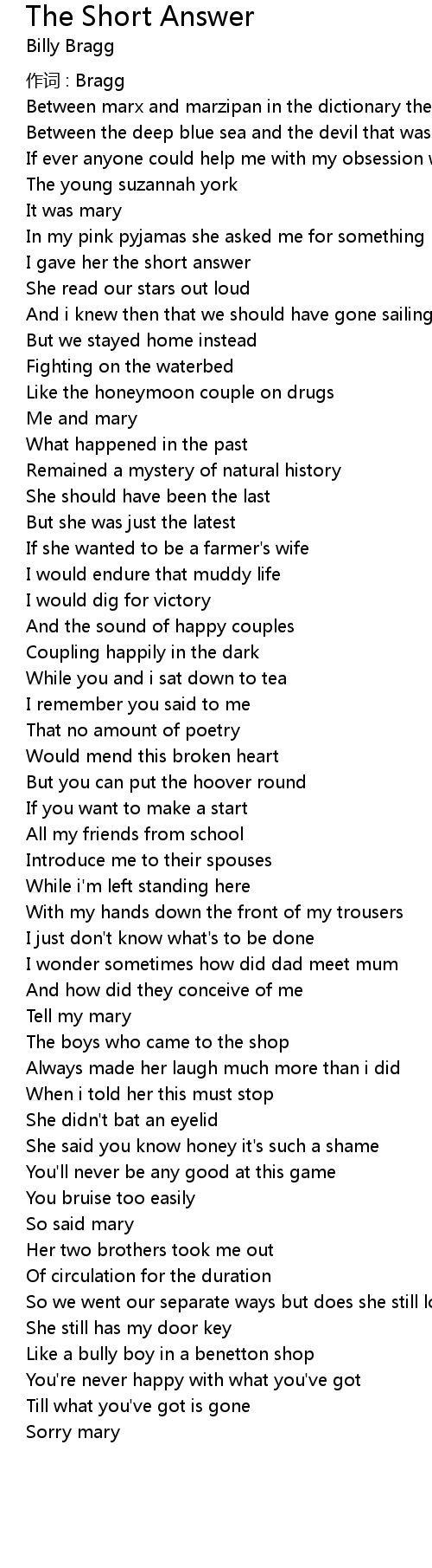 | 歌曲 | The Short Answer |