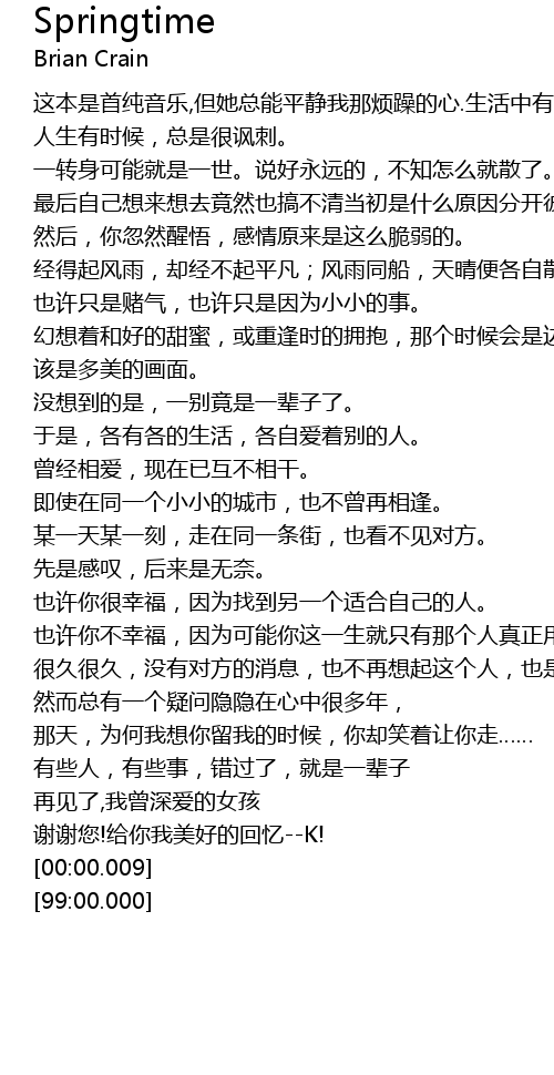| [04:05.89] | 谢谢您!给你我美好的回忆--K! |