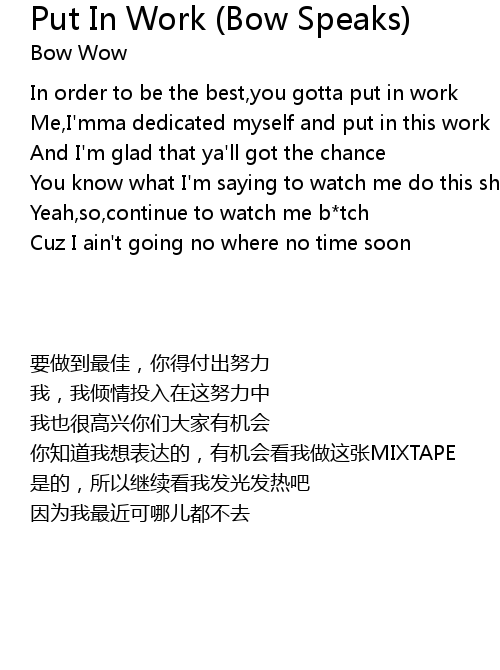 | 歌曲 | Put In Work (Bow Speaks) |