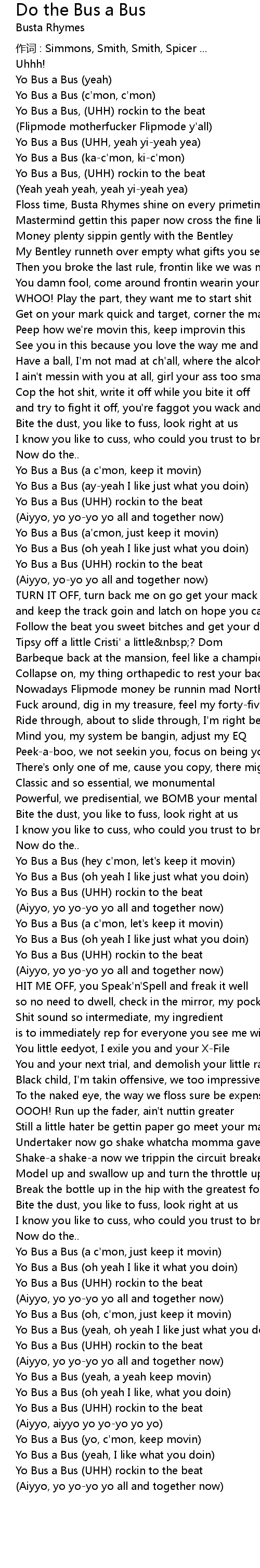 | Yo Bus a Bus UHH, yeah yiyeah yea | |