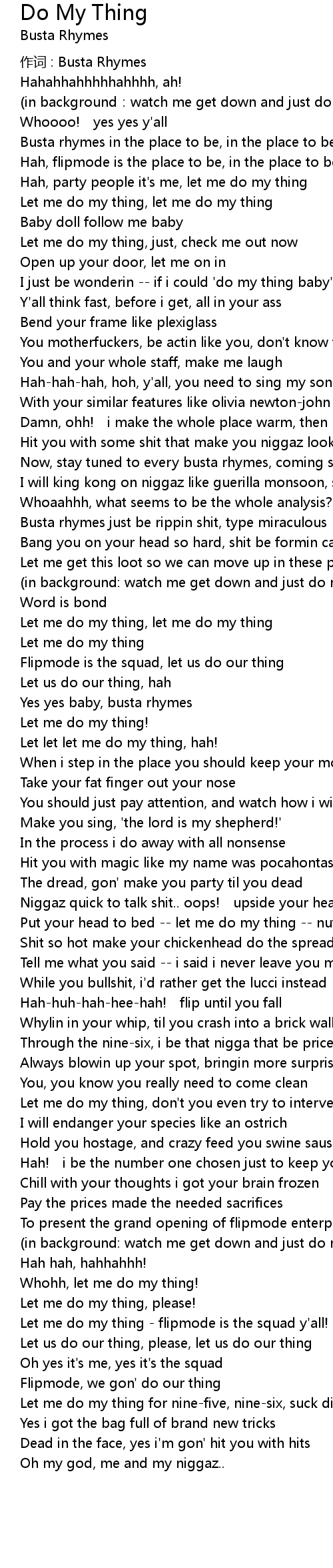 | (in background: watch me get down and just do my thing baby) *8x* | |