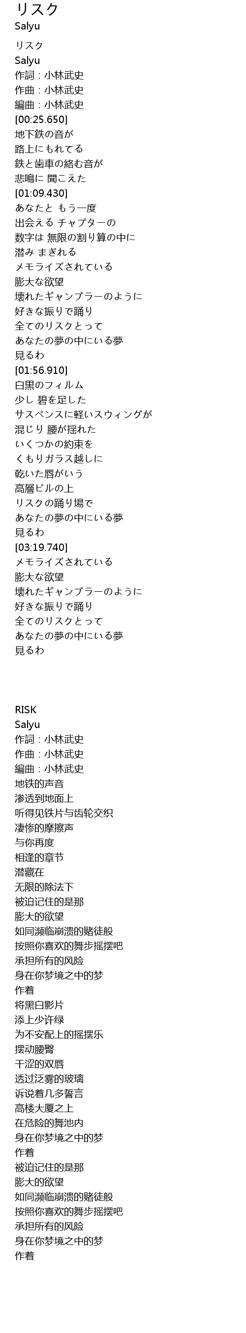 | 歌曲 | リスク |