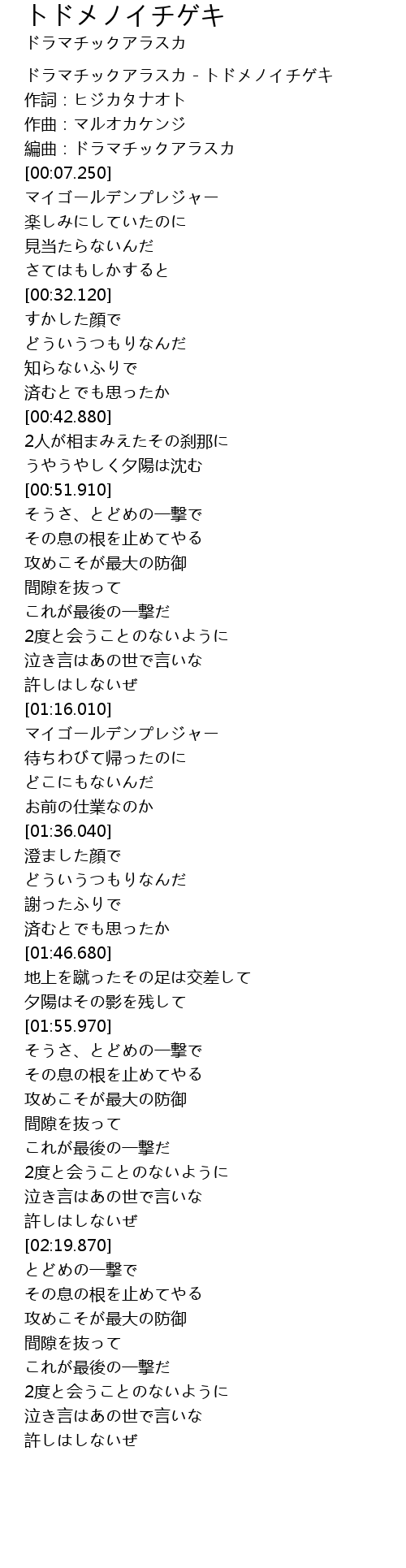 [00:00.130] ドラマチックアラスカ - トドメノイチゲキ