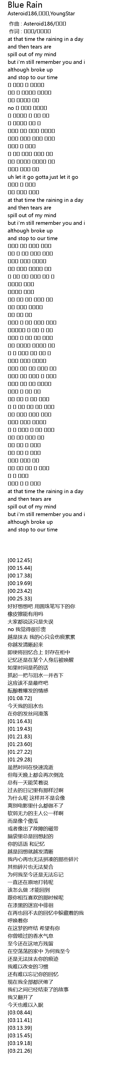 | [00:12.45] | at that time the raining in a day |