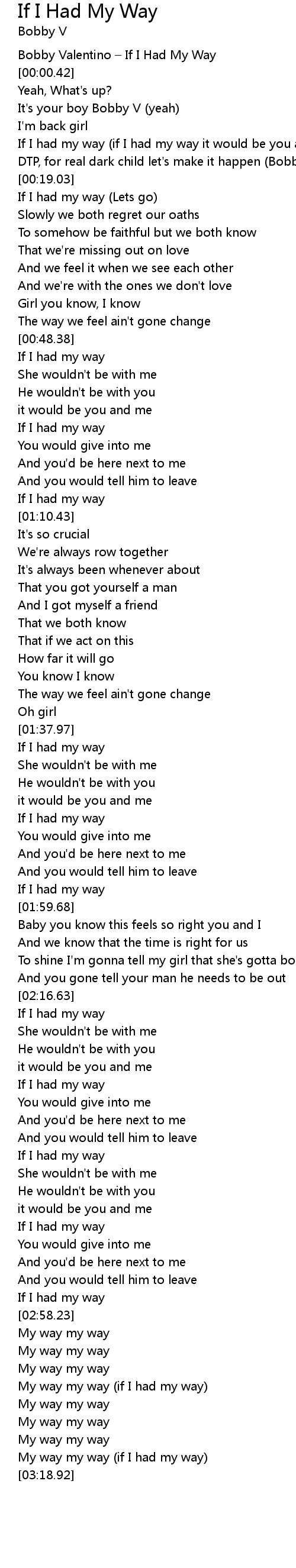 | [00:00.20] | Bobby Valentino If I Had My Way |