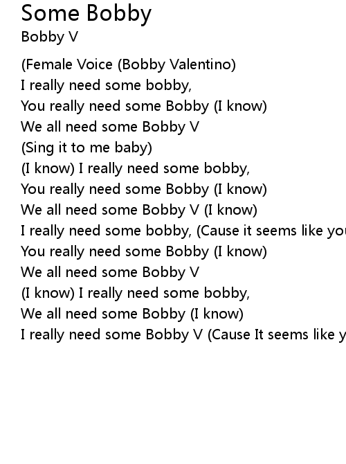 | I really need some Bobby V (Cause It seems like your ready) (I know) |