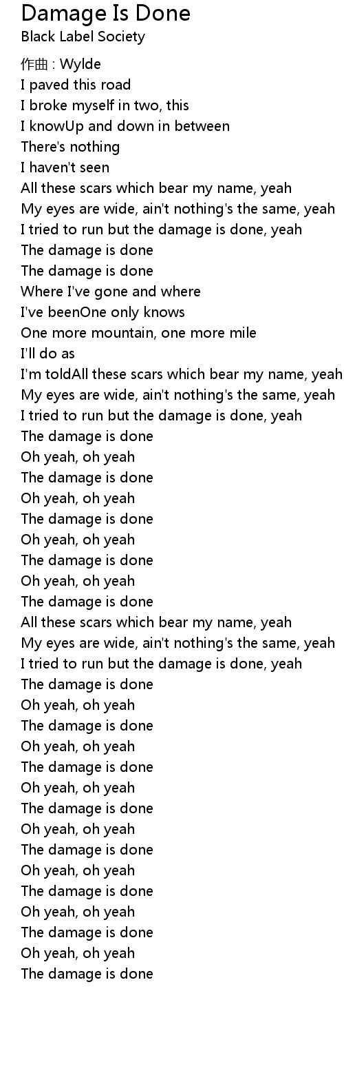 | 歌曲 | Damage Is Done |