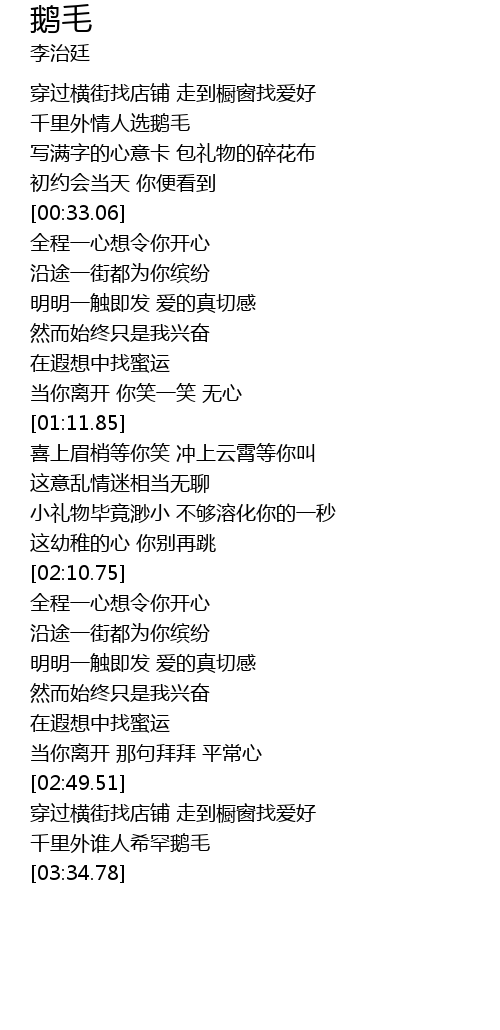 | [03:26.63] | 千里外谁人希罕鹅毛 |